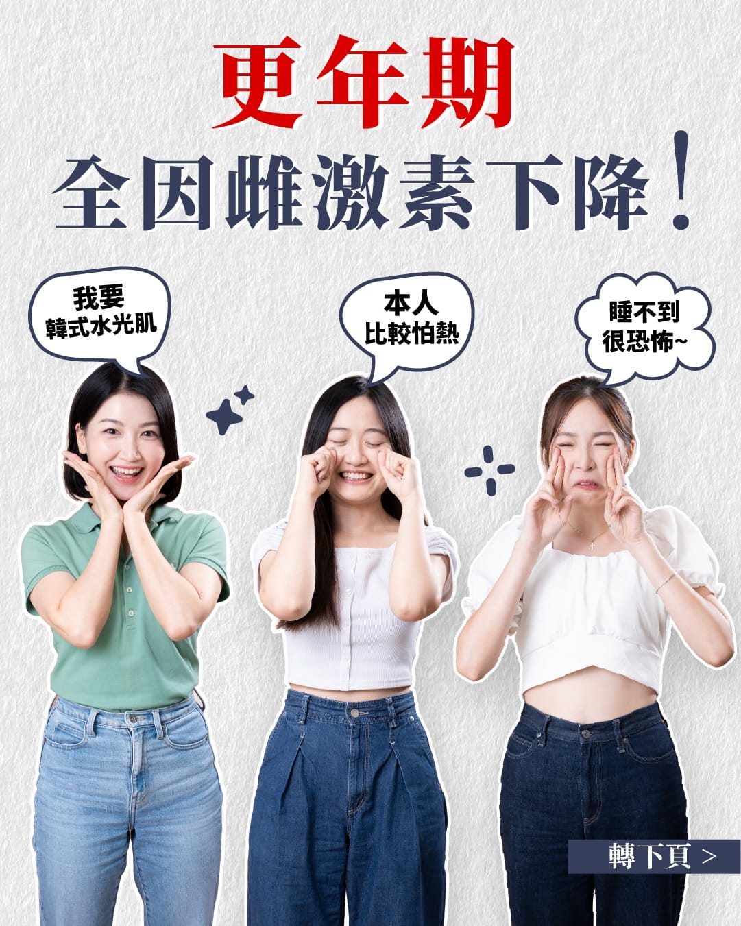 更年期不再是50歲以上女性的專屬話題。根據雌激素下降時間表,40歲前已開始出現卵巢衰退,40至45歲更可能提早收經,45歲後才屬於正常反應。