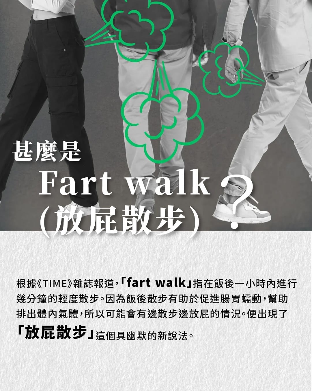 飯後散步不再只是為了消化,現在有了一個更直接的目的——排氣。根據《TIME》雜誌報導,「fart walk」(放屁散步)指在飯後一小時內進行幾分鐘的輕度散步,這個具幽默感的新說法正在成為健康趨勢。