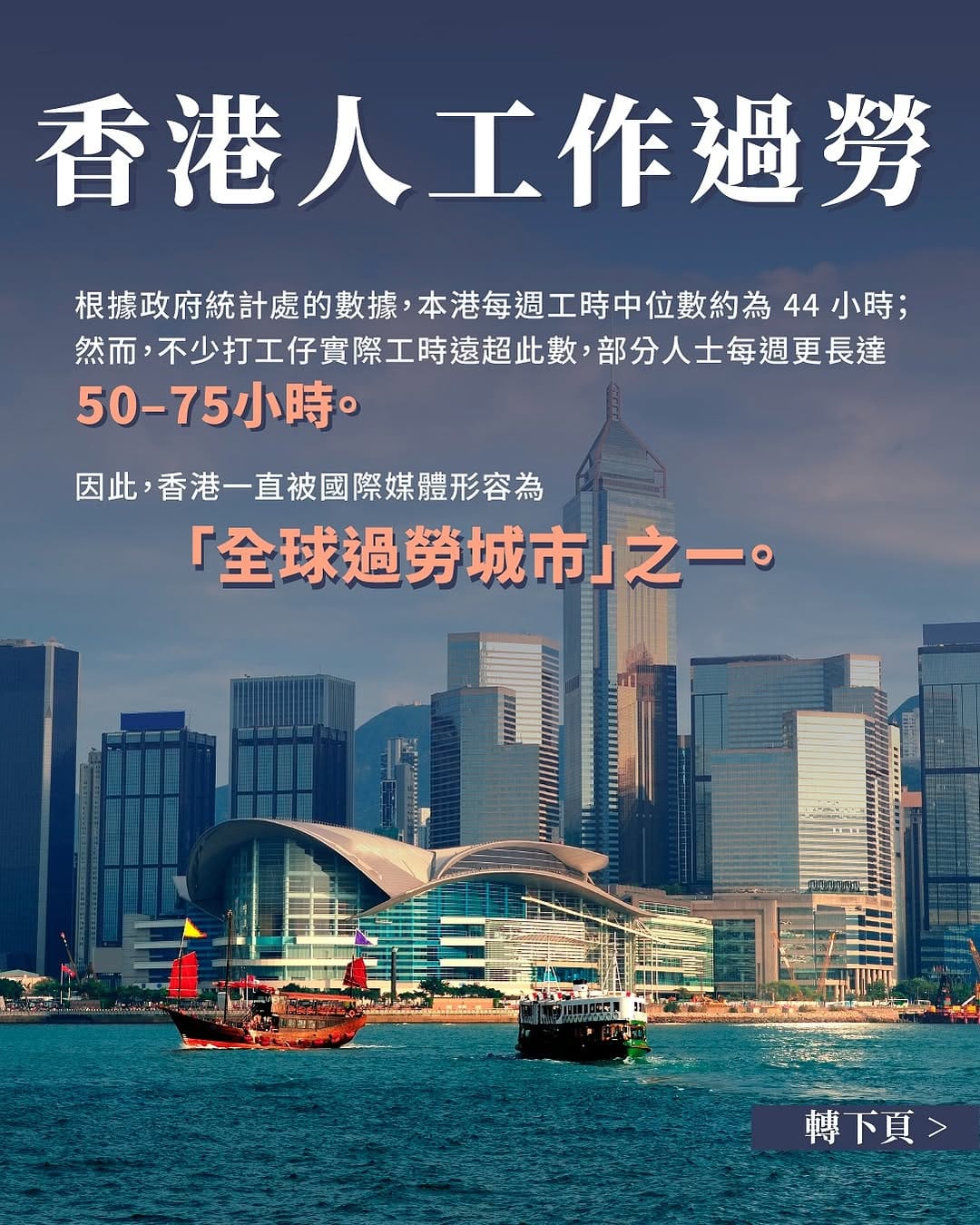 當全球多個發達國家正積極推動工作時間改革時,香港的打工族卻面臨著截然不同的現實。最新數據顯示,雖然香港政府統計處公布的每週工時中位數約為44小時,但實際情況遠比數字更嚴峻——不少打工仔的實際工時高達50至75小時,使香港被國際媒體形容為「全球過勞城市」之一。
