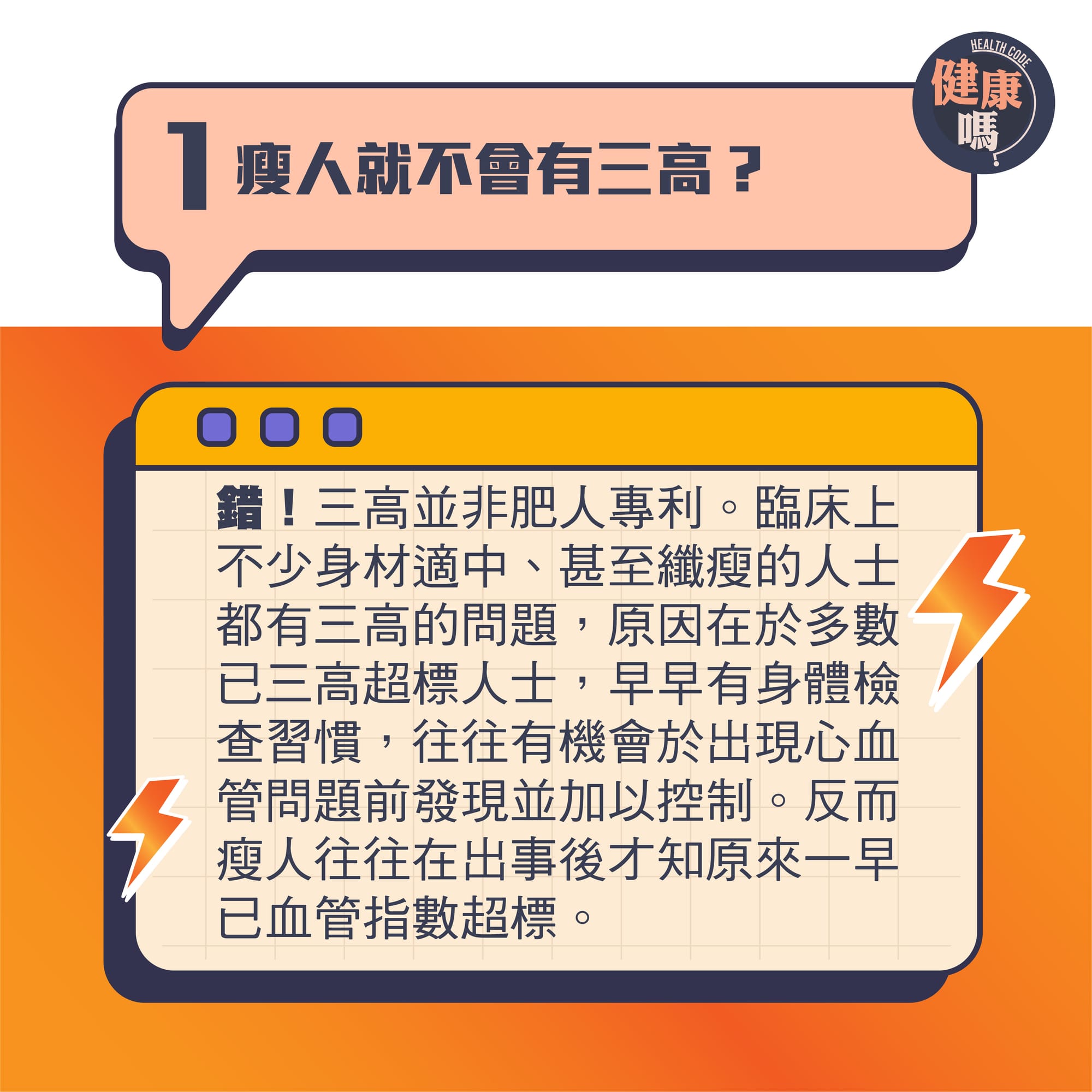 迷思1. 瘦人就不會有三高? ?