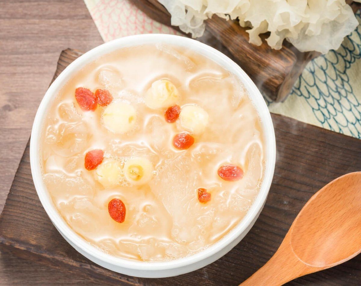 食材:白木耳1錢、蜂蜜1茶匙、紅棗3顆和枸杞1小把。